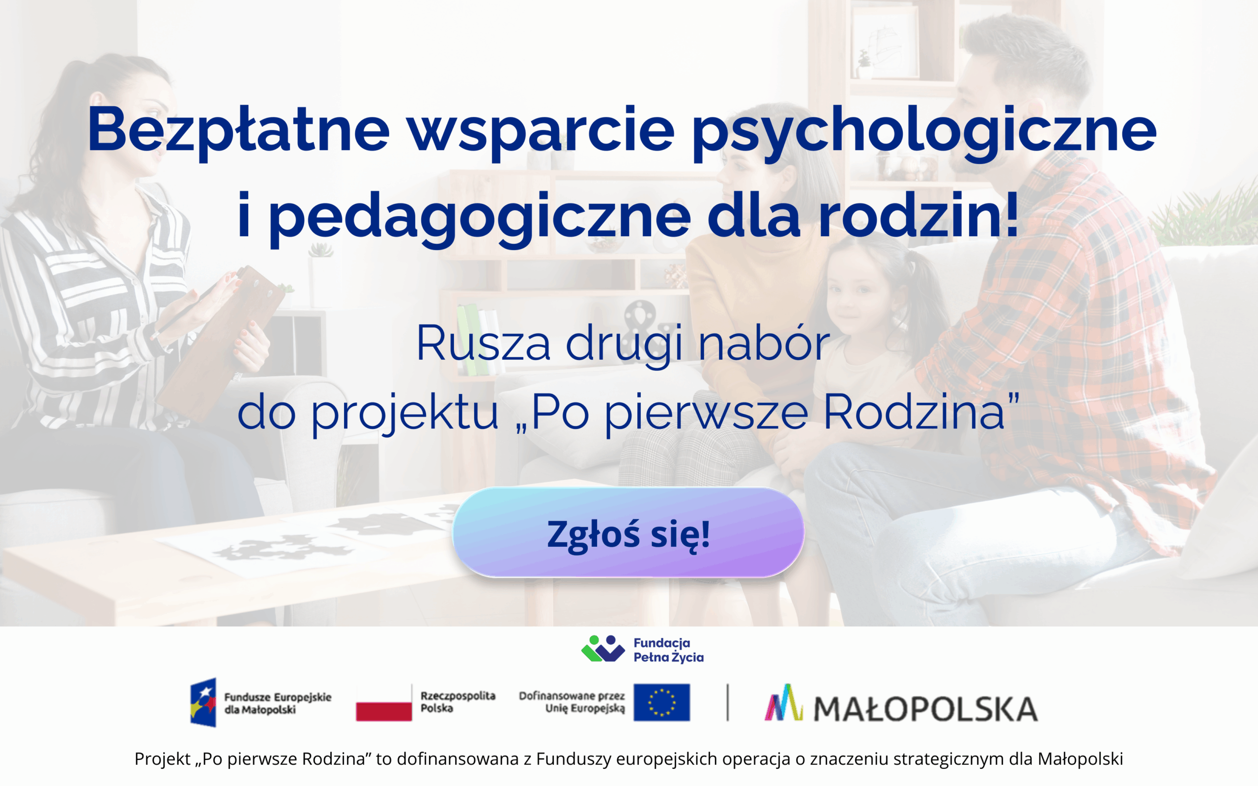 Do 27 stycznia trwa drugi nabór do projektu „Po pierwsze Rodzina", który ma na celu wsparcie psychologiczne i pedagogiczne rodzin doświadczających trudnej sytuacji. W naborze przewidziano 18 miejsc dla rodzin z powiatów krakowskiego, wielickiego, miechowskiego, proszowickiego, myślenickiego oraz miasta Kraków.